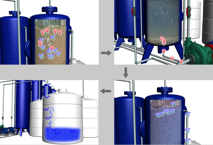四方公司開發(fā)成功利用DCS(集散式控制)控制技術(shù),以離子交換技術(shù)為核心、并整合上述各項(xiàng)技術(shù)為一體的“SF電鍍廢水及重金屬再生回用新工藝”及“SF全自動(dòng)綜合電鍍廢水處理及重金屬回收系統(tǒng)”。